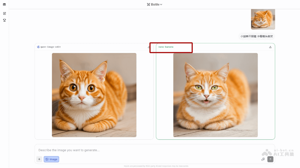 - 选择最佳结果:生成完成后,系统显示两张图片,选择哪张效果更好。选择后,系统揭晓生成这张图片的模型。如果你运气好,Nano Banana生成的图片会被选中,效果通常非常出色。