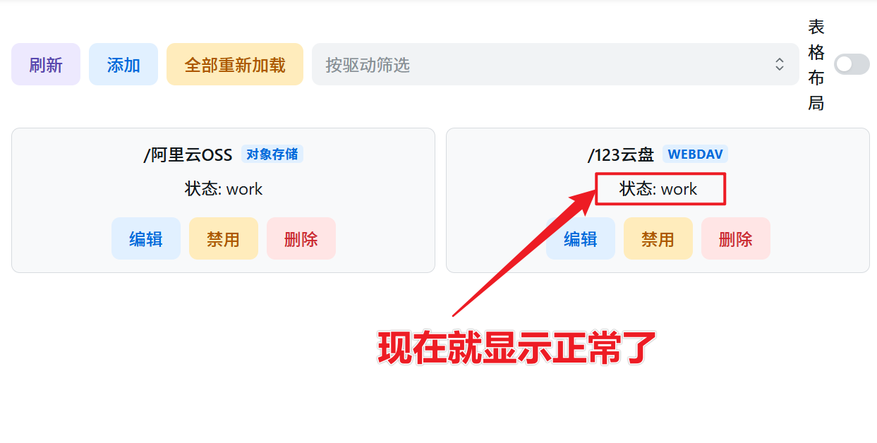 这种情况先在AList 管理里删除123云盘,然后在123云盘网站--个人中心--设备管理删除一些设备,会员允许同时在线10台设备,然后等待几个小时,再在AList里添加试试。 如果不行,就使用123云盘官方--工具中心--WebDAV授权管理,添加应用的方式在SUGDrive直接挂载,或者添加到AList 存储里。