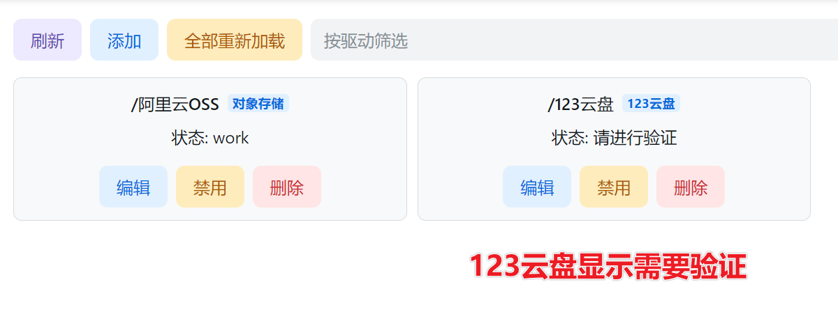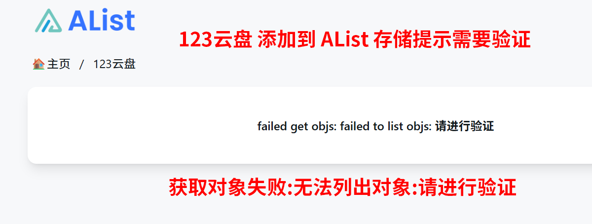 如果123云盘反复添加删除,也可能导致123云盘对AList停止支持,出现以下添加失败需要验证的情况。