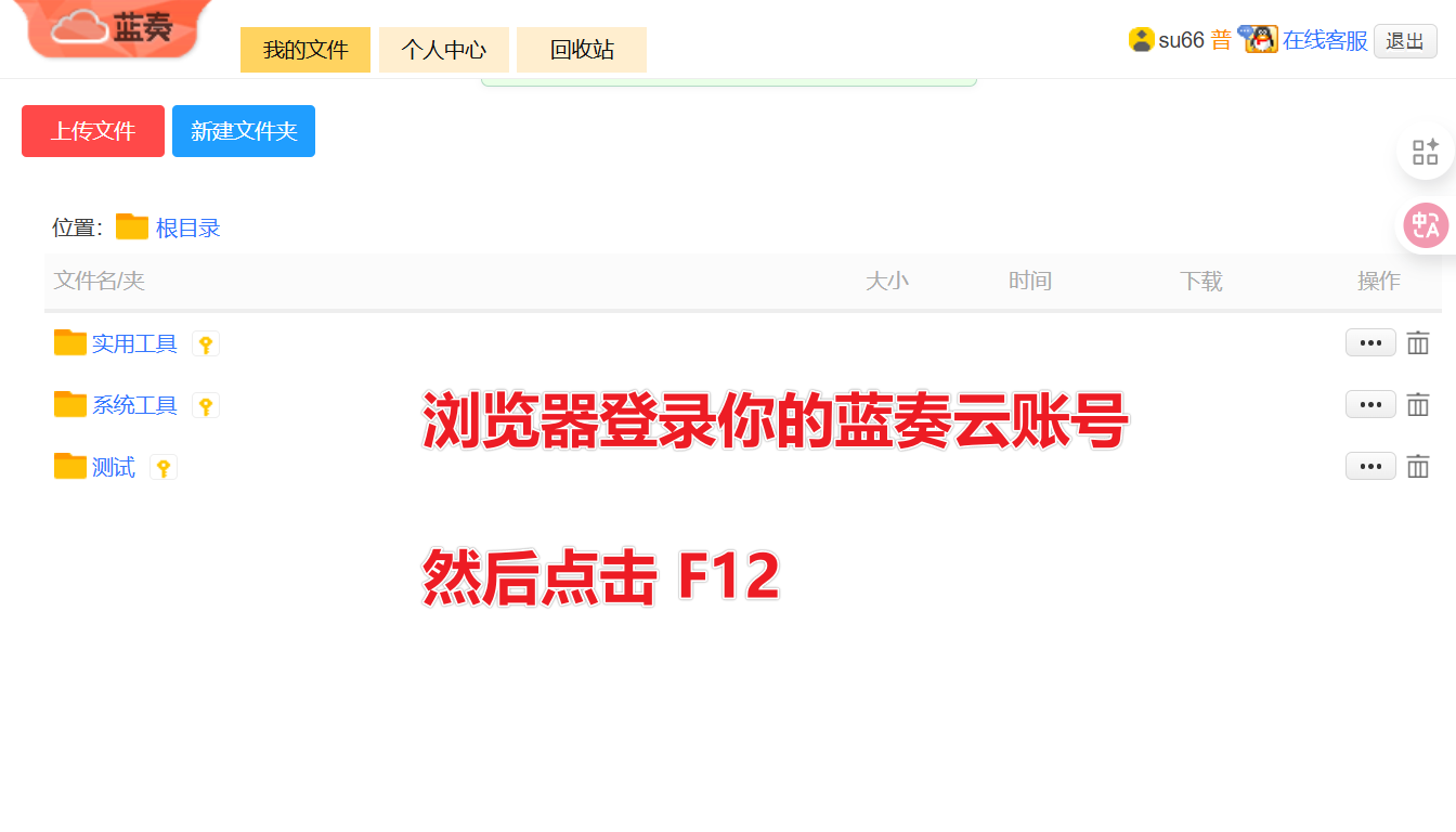 在浏览器登录蓝奏云后,点击F12打开开发者工具