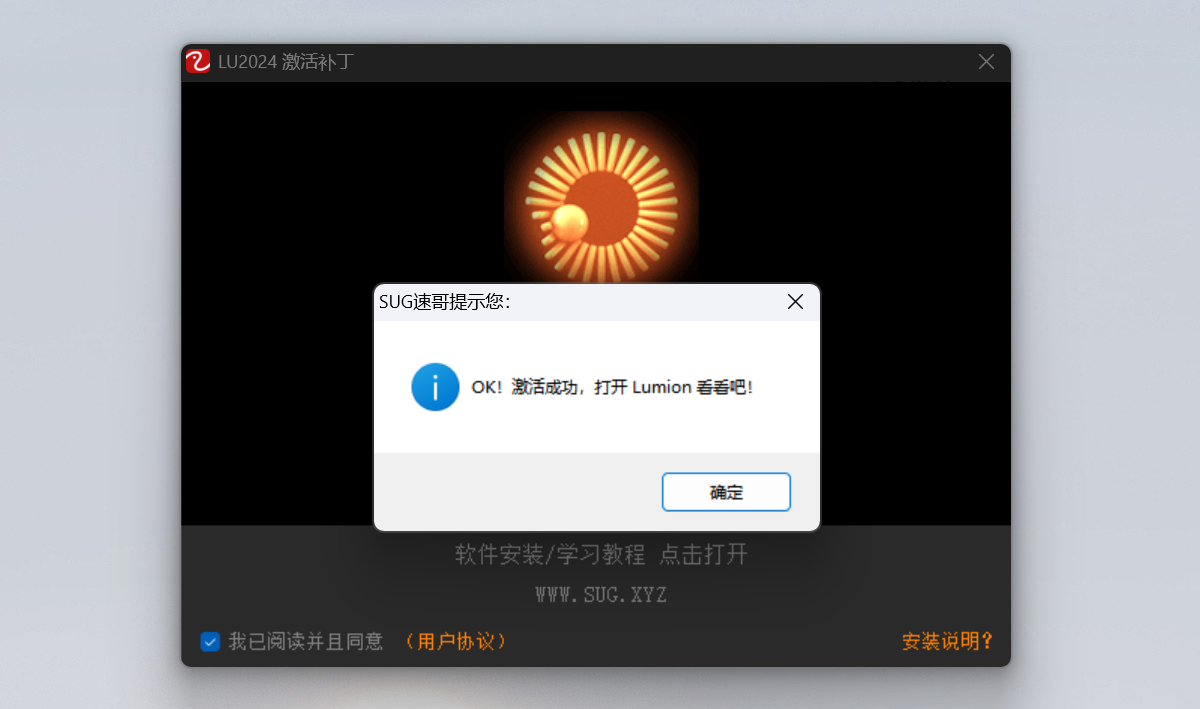 4、运行激活程序 LU2023.4.2.0Patch-SUG.exee,点击一键安装