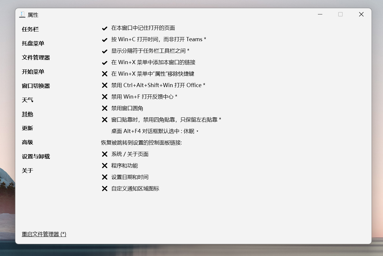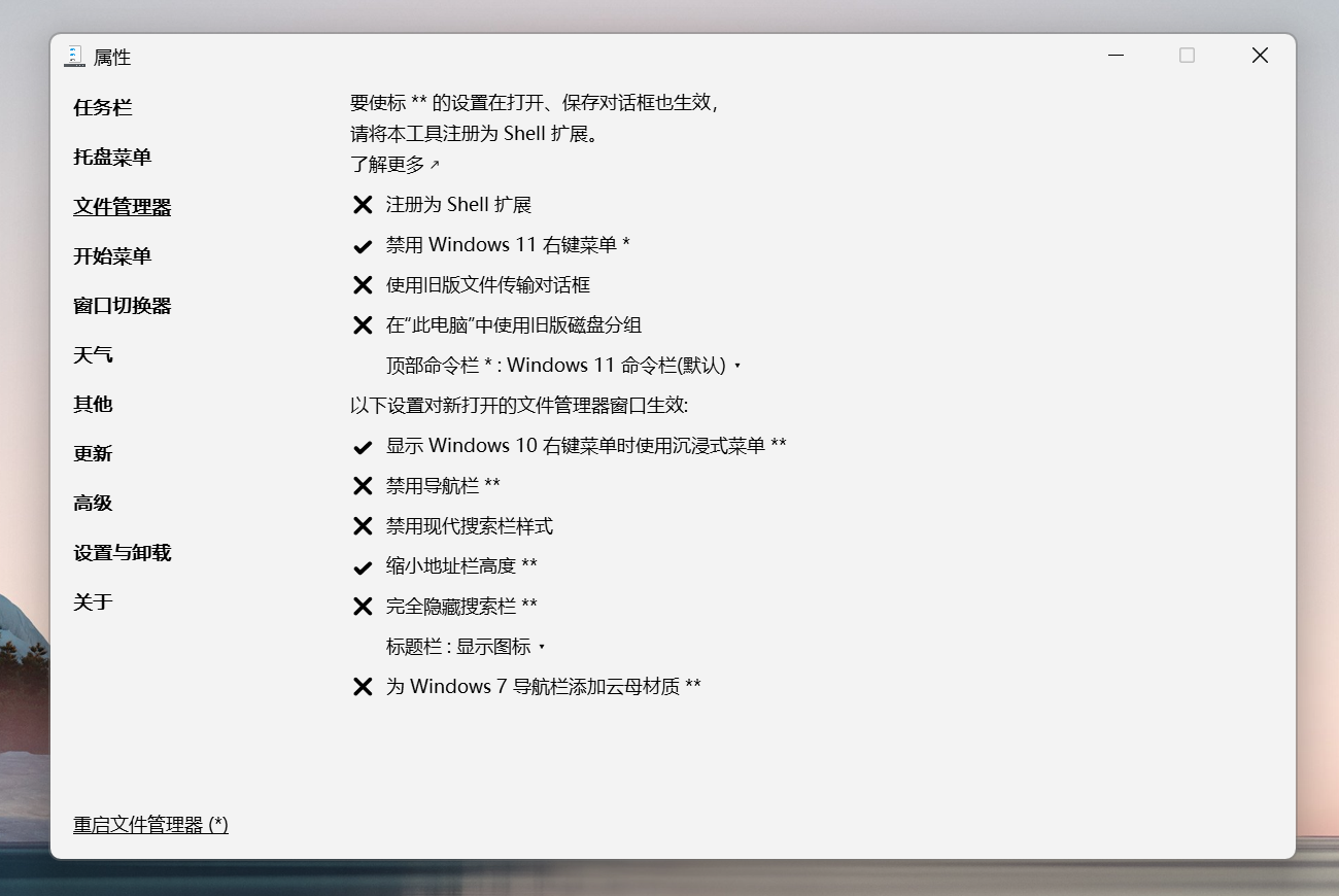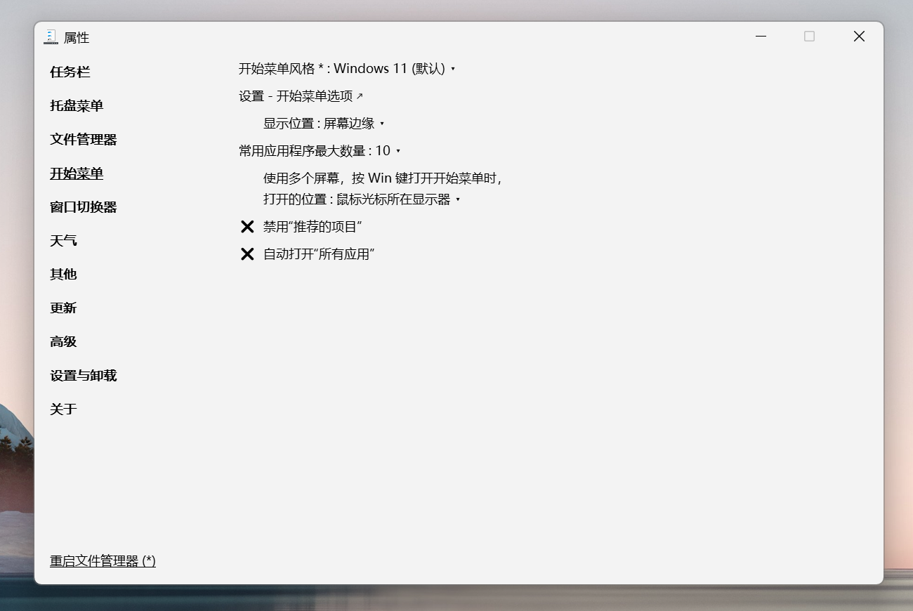 它的主要作用是:让 Windows 11 的界面恢复或增强为 Windows 10 / 经典样式,并提供更多任务栏、开始菜单、自定义功能。
