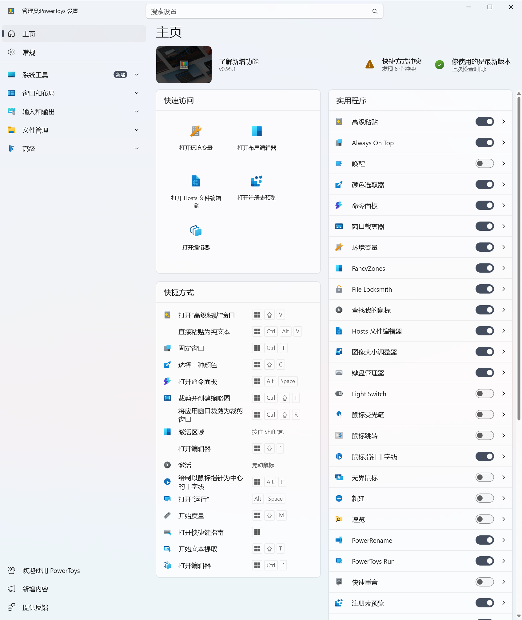 | Keyboard Manager | 自定义或重映射快捷键、键盘按键。 |