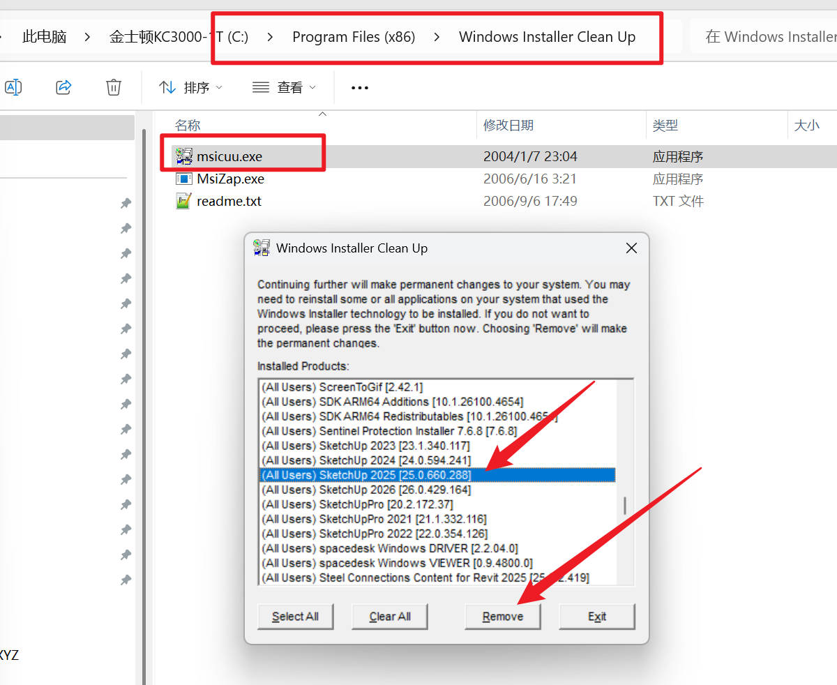 安装安装后并没有桌面看见图表,需要在这个位置打开 msicuu.exe 程序