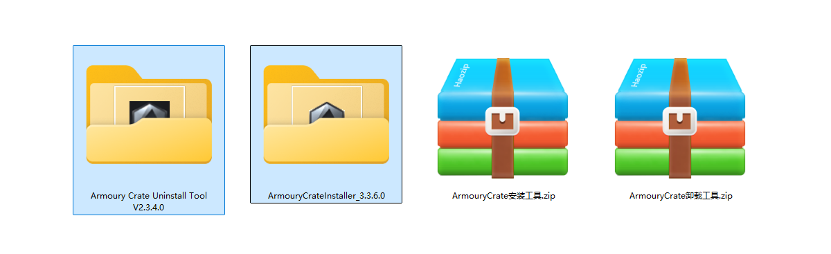 在页面里找到:Armoury Crate Installer(安装工具)和 Armoury Crate Uninstall Tool(卸载工具)