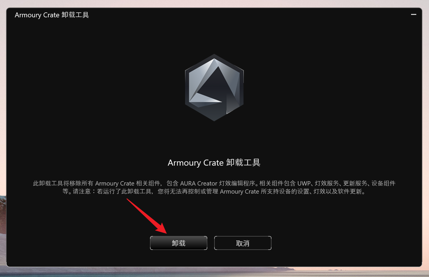 右键 Armoury_Crate_Uninstall_Tool.exe → “以管理员身份运行”