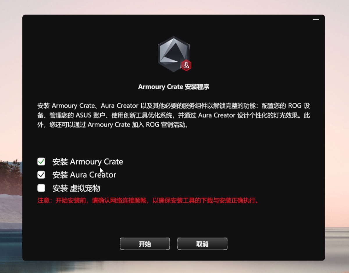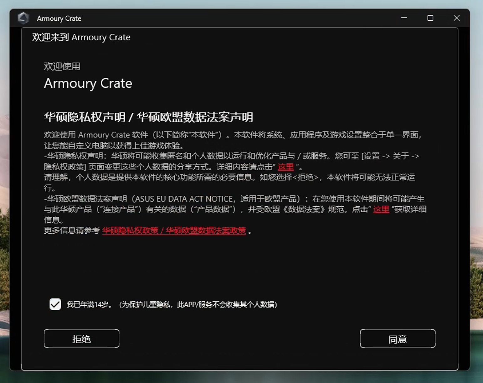 Windows 开机后 Armoury Crate 一直显示“正在更新…”
