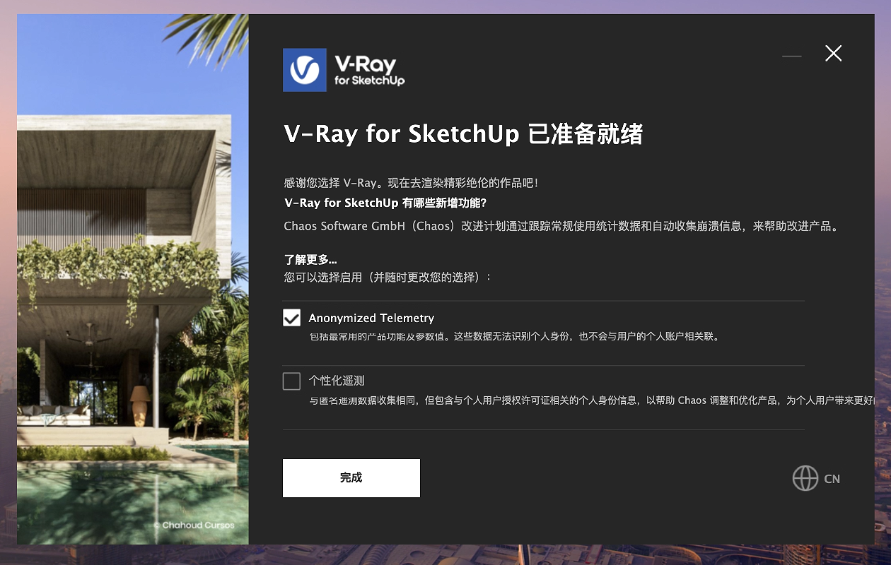 V-Ray 是一款专业渲染引擎,而 VRay for SketchUp 是其针对 SketchUp(草图大师)设计的插件版本。作为 SketchUp 最常用的渲染工具之一,它结合了 SketchUp 简便的建模优势与 VRay 强大的光影计算能力,广泛应用于建筑设计、室内设计、景观设计等领域,能将模型转化为极具真实感的效果图。