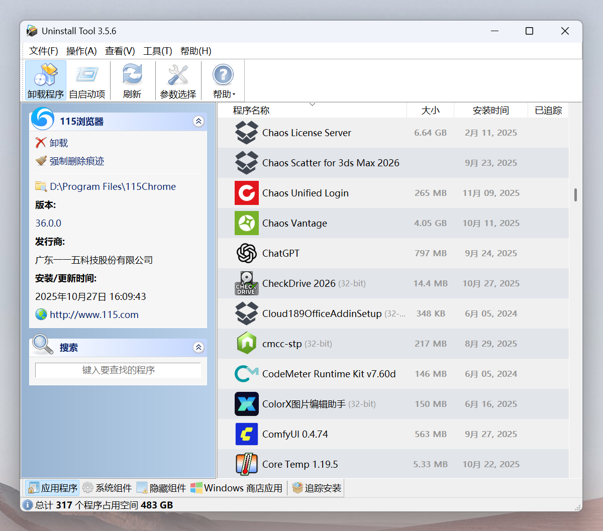 能显示系统中所有已安装程序,包括一些 系统看不到的隐藏软件。