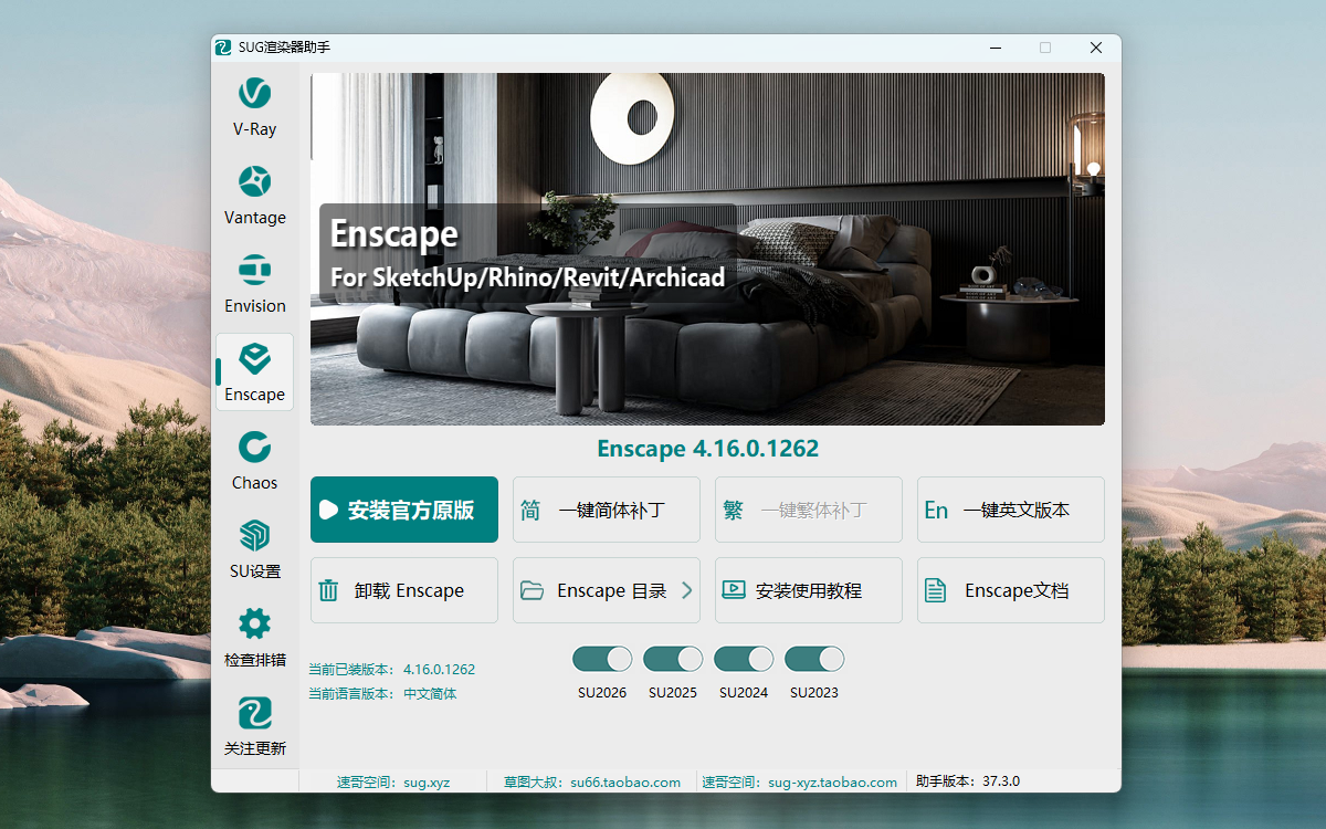 Enscape4.16.0.1262,2026-02-25更新,支持SU2023-2026(稳定,推荐)